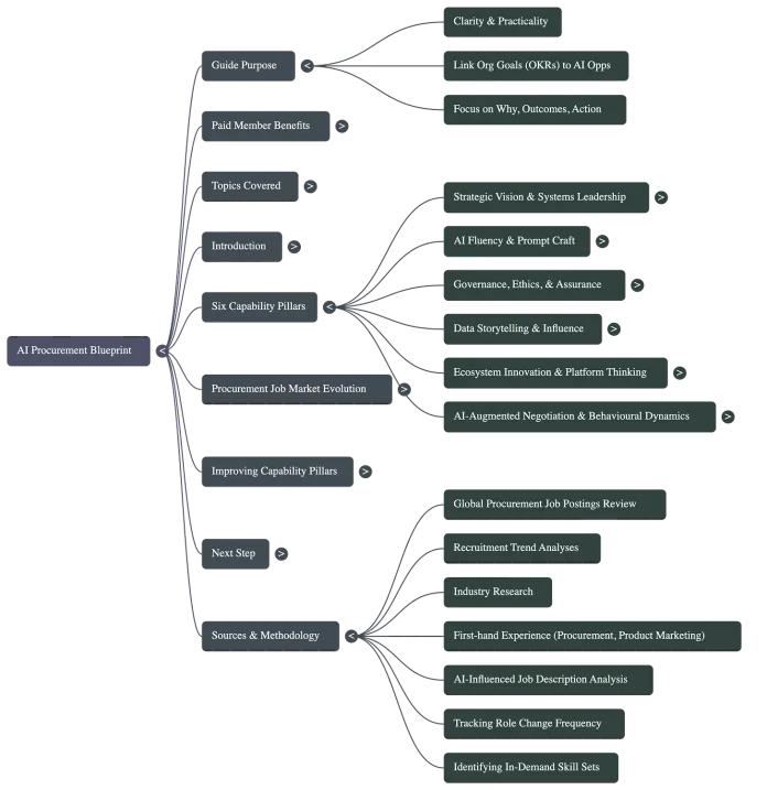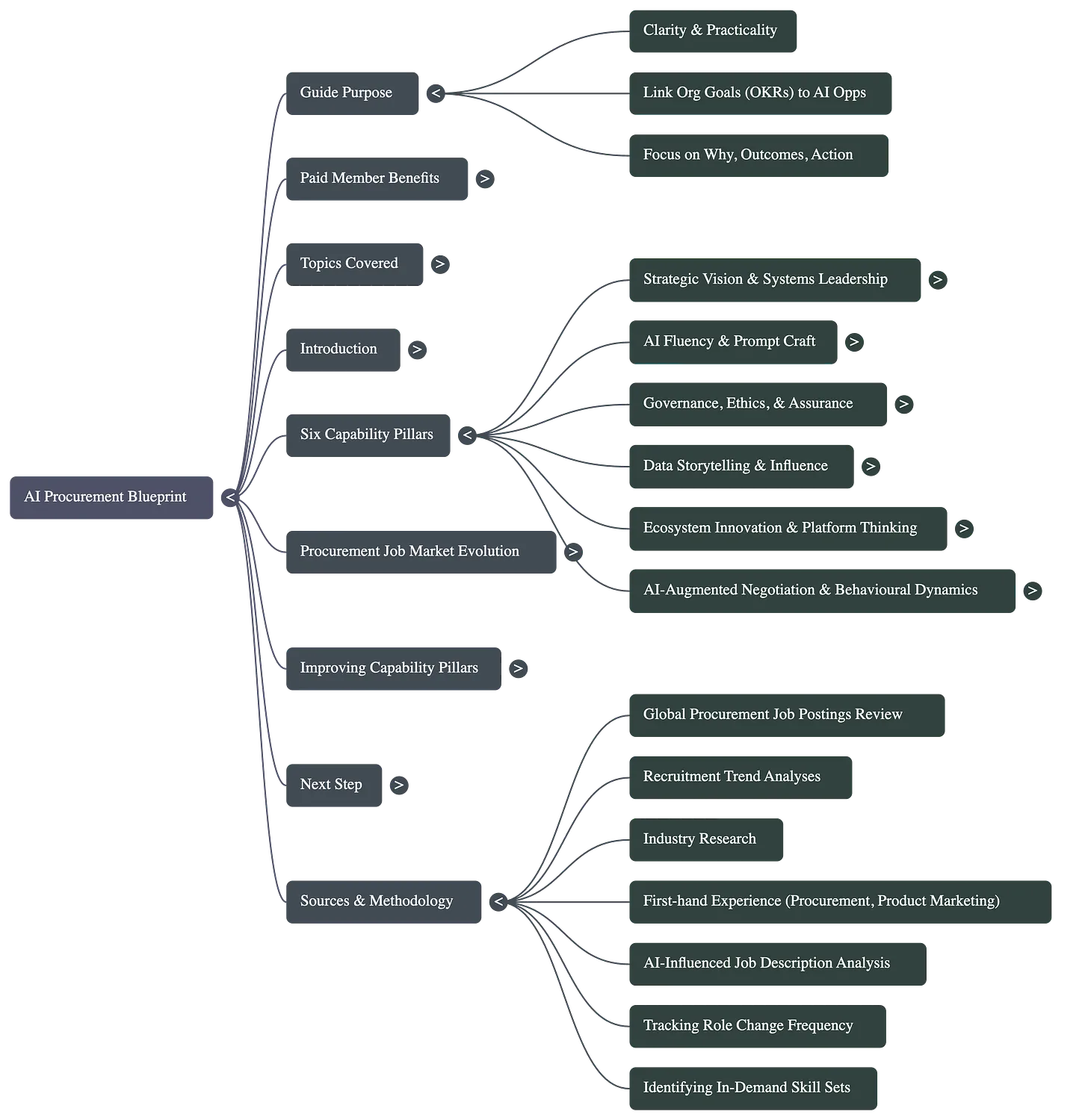 The AI Procurement Blueprint is a practical guide for integrating artificial intelligence into procurement processes, designed for professionals at all experience levels. It highlights six key capability pillars essential for success – strategic vision, AI fluency, governance, data storytelling, ecosystem innovation, and AI-augmented negotiation.